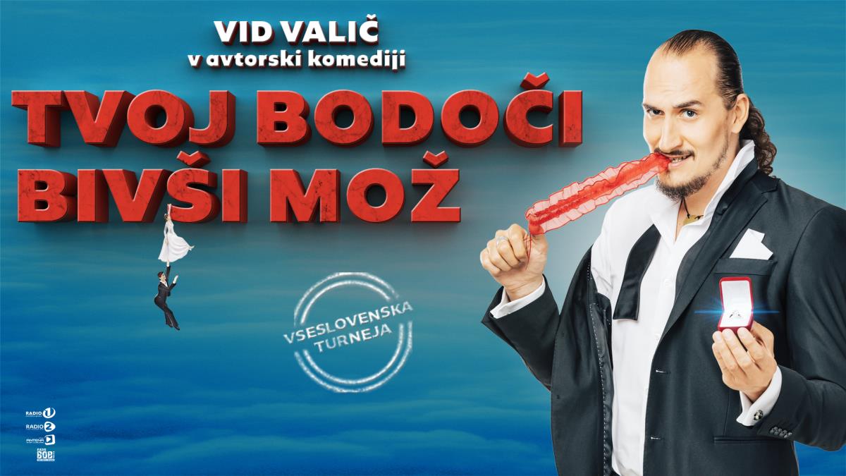 Vid Valič bi se rad poročil. Že od nekdaj. Ampak, kaj narediš, če se hočeš poročiti, pa ne najdeš prave? Kaj narediš, če najdeš pravo, pa se ona noče poročiti s tabo? Kaj narediš, če zasnubiš 20 žensk v dveh letih in ti vsaka reče NE?! In kaj narediš, če ti kakšna dejansko reče DA? »Samsko življenje večinoma ni izbira, ampak posledica. Če si samski pri 25-ih, si normalen moški, če si samski pri 35-ih letih, te imajo ljudje za psihopata ali geja. Ampak kakšno zvezo imajo z vsem tem menihi?« »Kako osvajati žensko, s katero se hočeš družiti samo en večer, in kako osvajati žensko, da bo ostala s tabo dlje časa? Ali plešavost pomaga? Kakšna je formula za uspešen zmenek? Pojma nimam! Sem jih dal pa veliko čez.« »Zakaj toliko parov živi na koruzi in drugih žitaricah? Zakaj je poroka za ljudi samo še list papirja, ki ga ni nujno imeti. Zakaj smo romantično poroko zamenjali za višje otroške dodatke in cenejšo šolsko prehrano? Pravijo, da je poroka draga stvar, ampak na matičnem uradu pravijo, da je prvič zastonj.« »Zakaj se ljudje spremenimo, ko se navadimo drug na drugega? Zakaj ne moremo ostati tako prijazni in uvidevni, kot smo bili na prvem zmenku? Kdaj se romanca izgubi, kako jo lahko pripeljemo nazaj in kje nam pri tem lahko pomaga udomačeni piton?« V osebno izpovedni komediji bo Vid Valič iskal odgovore na ta vprašanja in morda bo prav on tisti, ki bo na koncu rekel DA. Najbrž ne … ampak mogoče … »Tvoj bodoči bivši mož« je komedija, kjer boste našli koščke svojega življenja, ki jih boste lahko lepili skupaj in Valič vam bo priskrbel lepilo.