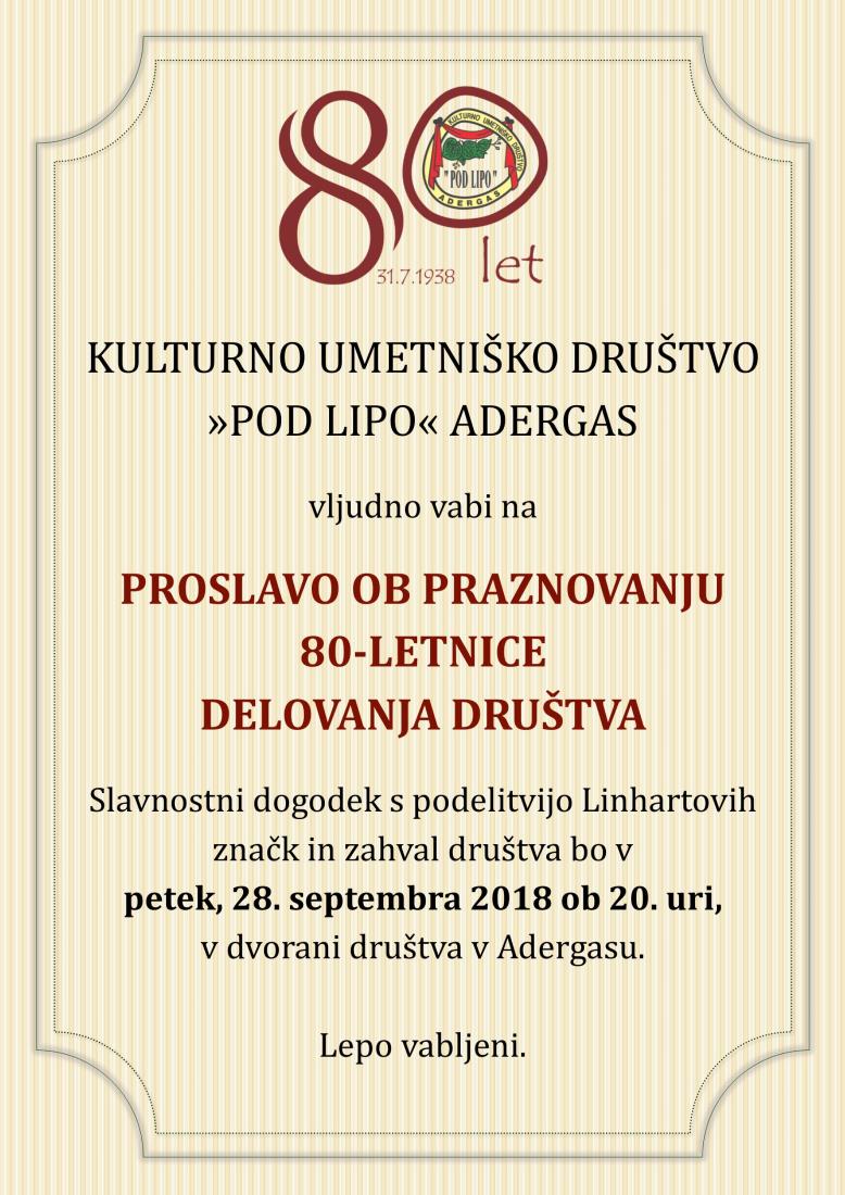 Proslava ob 80-letnici delovanja društva KUD Pod lipo Adergas