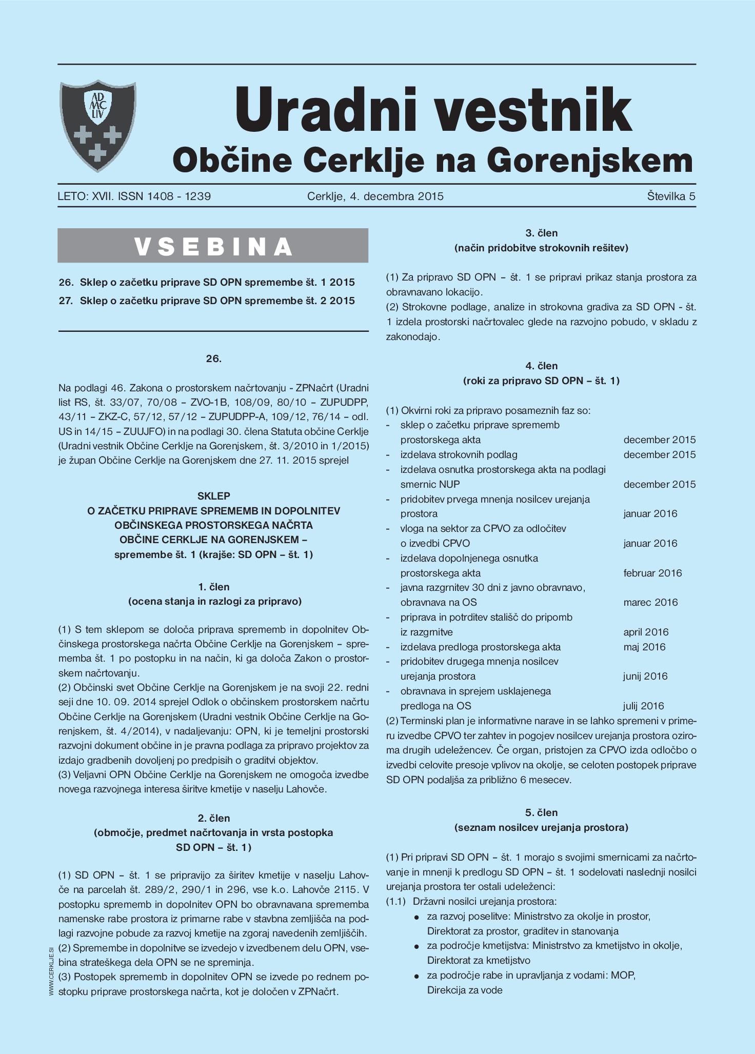 Uradni vestnik, Št. 5, 4. december 2015