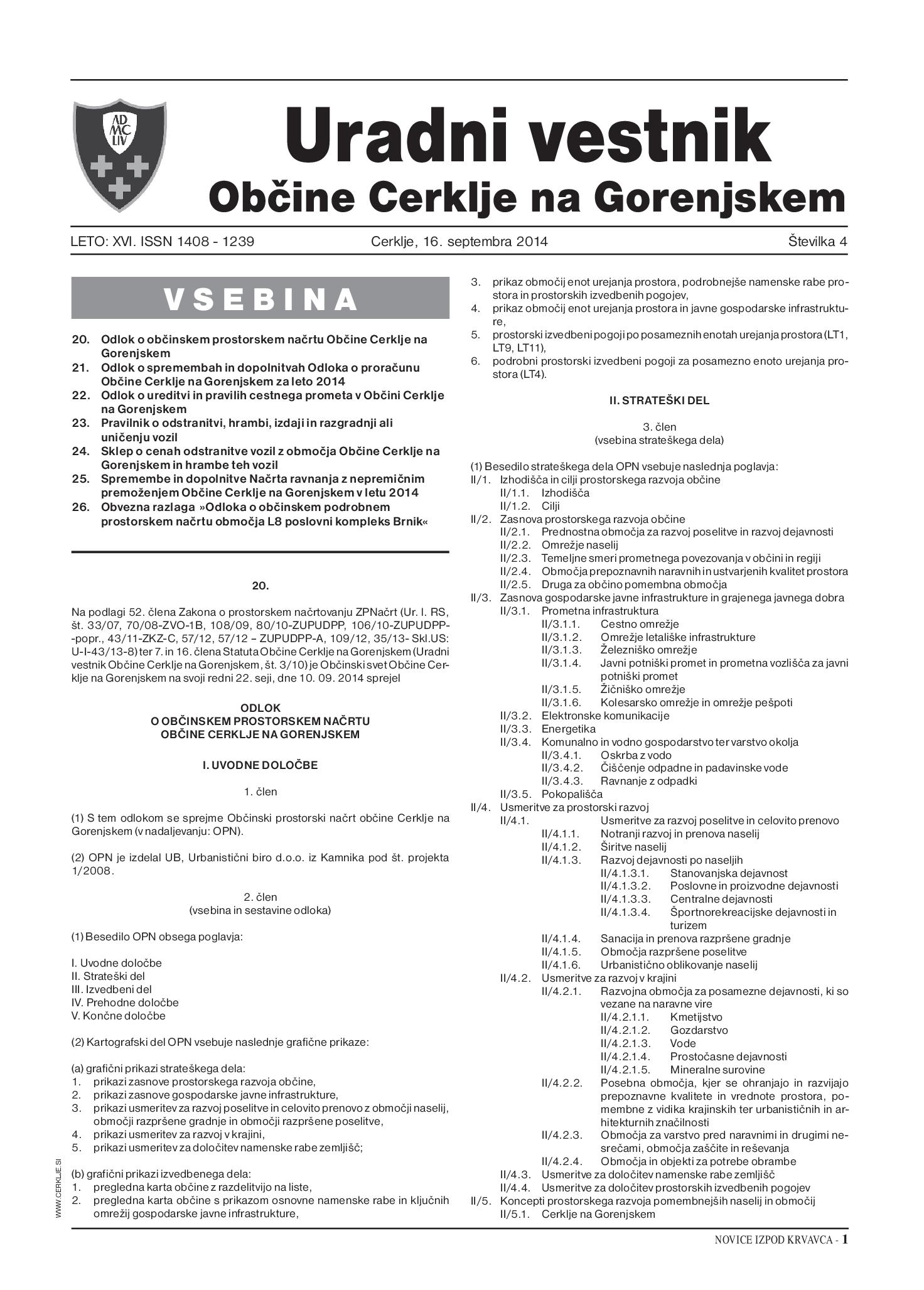Odlok o občinskem prostorskem načrtu Občine Cerklje na Gorenjskem - UV občine Cerklje na Gor., št. 4/2014 (Uradni vestnik, Št. 4, 16. september 2014)