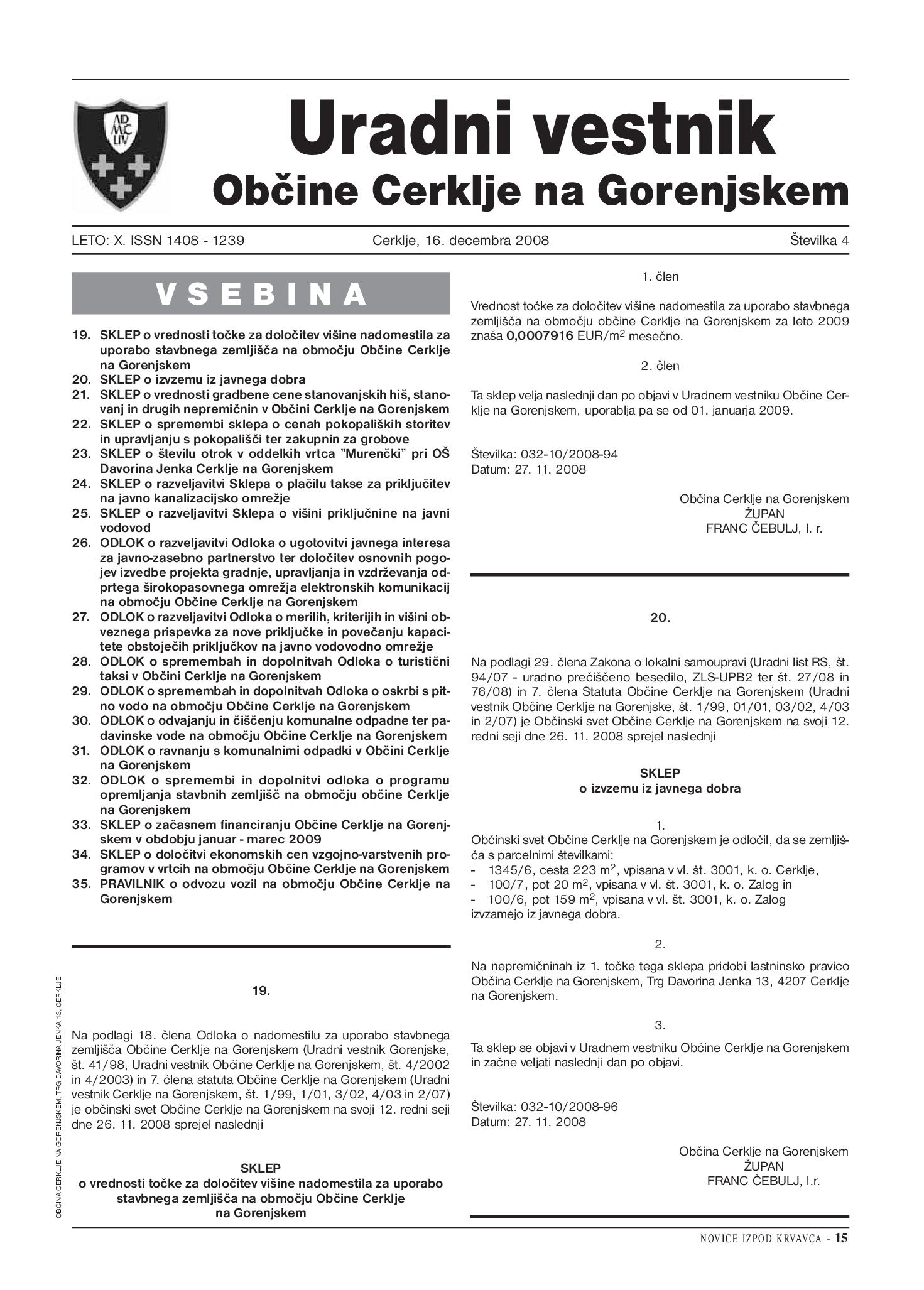 Sklep o izvzemu iz javnega dobra - UV Občine Cerklje na Gor., št. 4/2008 (Uradni vestnik, Št. 4, 16. december 2008)