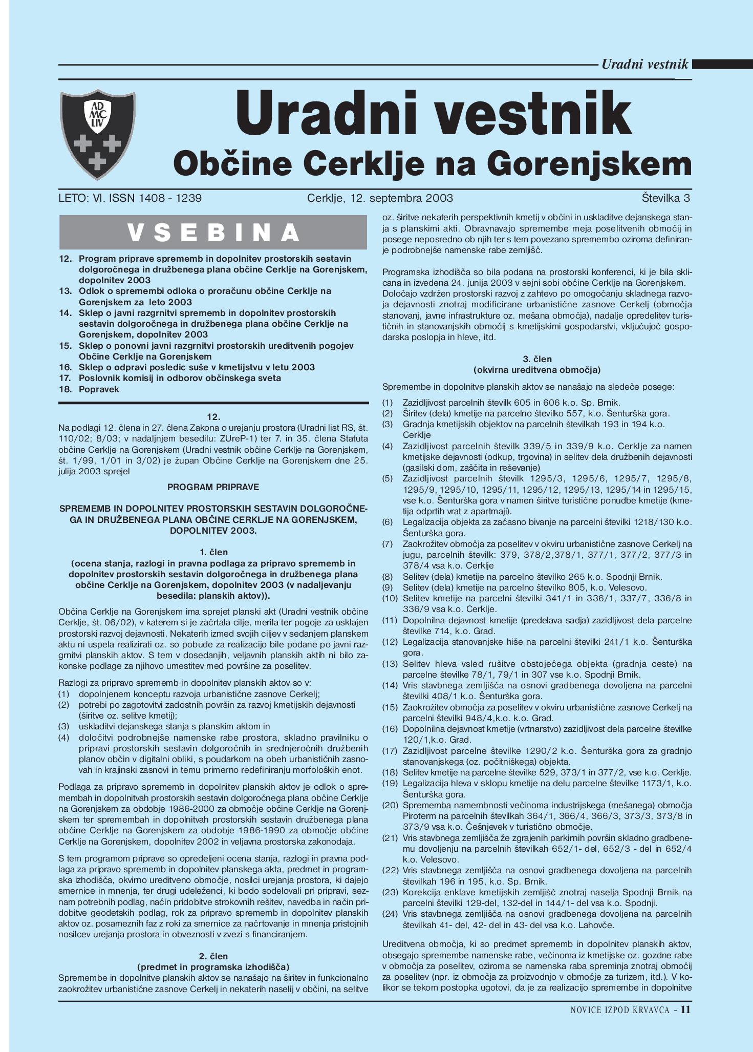 Uradni vestnik, Št. 3, 12. september 2003