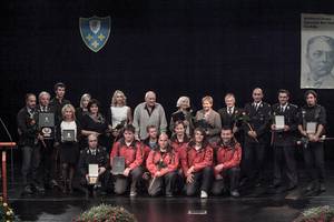 Na letošnji občinski slovesnosti, ki jo je zaznamovalo prijetno vzdušje in polna dvorana kulturnega hrama, so občinske nagrade Občine Cerklje na Gorenjskem prejeli naslednji nagrajenci: Veliko plaketo Občine Cerklje na Gorenjskem je prejel Franc Kropivnik z Zgornjega Brnika, za njegovo dolgoletno prizadevanje na področju gasilstva, ter aktivno vlogo pri medsebojnem povezovanju ljudi znotraj lokalne skupnosti. Malo plaketo Občine Cerklje na Gorenjskem je prejel Družinski in mladinski center Cerklje z vodjo Natašo Urh in prostovoljci programa Oratorij, ki združuje preko 120 prostovoljcev. Enkratno denarno nagrado Občine Cerklje na Gorenjskem je prejela Daniela Močnik iz Cerkelj. Priznanja Občine Cerklje na Gorenjskem so prejeli: Jože Teran iz Poženika, Dragica Kropivnik z Zgornjega Brnika, Marija Vidali iz Grada, Ivan Kepic iz Cerkelj in Andreja Jagodic iz Cerkelj. Spominske plakete Občine Cerklje na Gorenjskem pa so prejeli: Moto klub Kevder iz Cerkelj s predsednikom Janezom Sajovicem, Ekipa članov A fantastičnih 9 pri PGD Zalog pri Cerkljah in člana PGD Zalog pri Cerkljah Jure Kepic in Bogdan Kouter. Vsem nagrajencem čestitamo in jim želimo veliko uspeha pri nadaljnem delu. Slika...