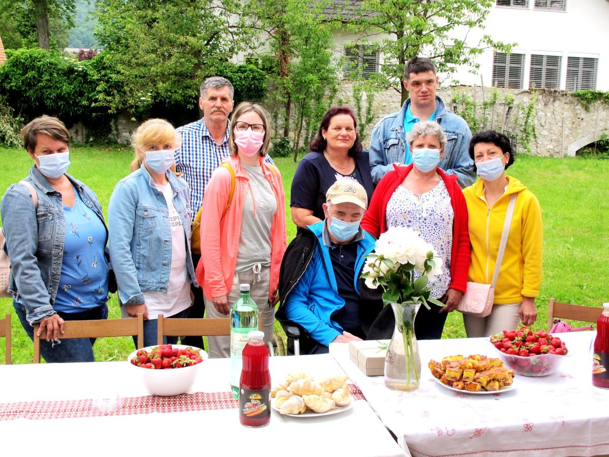 S prvimi grozdnimi jagodami te trte se bodo letos, na povabilo Tomaža Novaka uporabniki Centra lahko prvič posladkali jeseni, v petek pa so lahko okušali sladke rdeče domače vrtne jagode ,jagodni sok in pecivo z jagodami. Prisotni člani skupine Centra Korak so bili navdušeni nad sprejemom, ki sta ga a njih posebej pripravila Dane Novak z ženo Karolino, ki je kot krušna mama naredila za Tomaža največ kar je lahko.