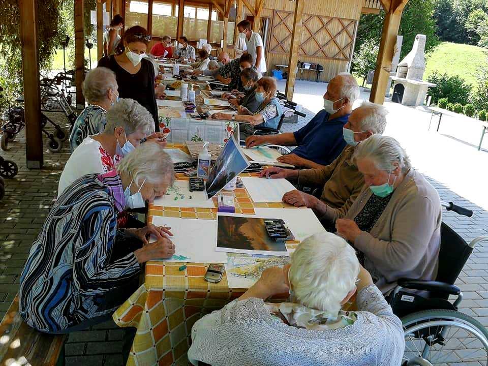 Likovna delavnica pred kajžo Doma Taber v Šmartnem