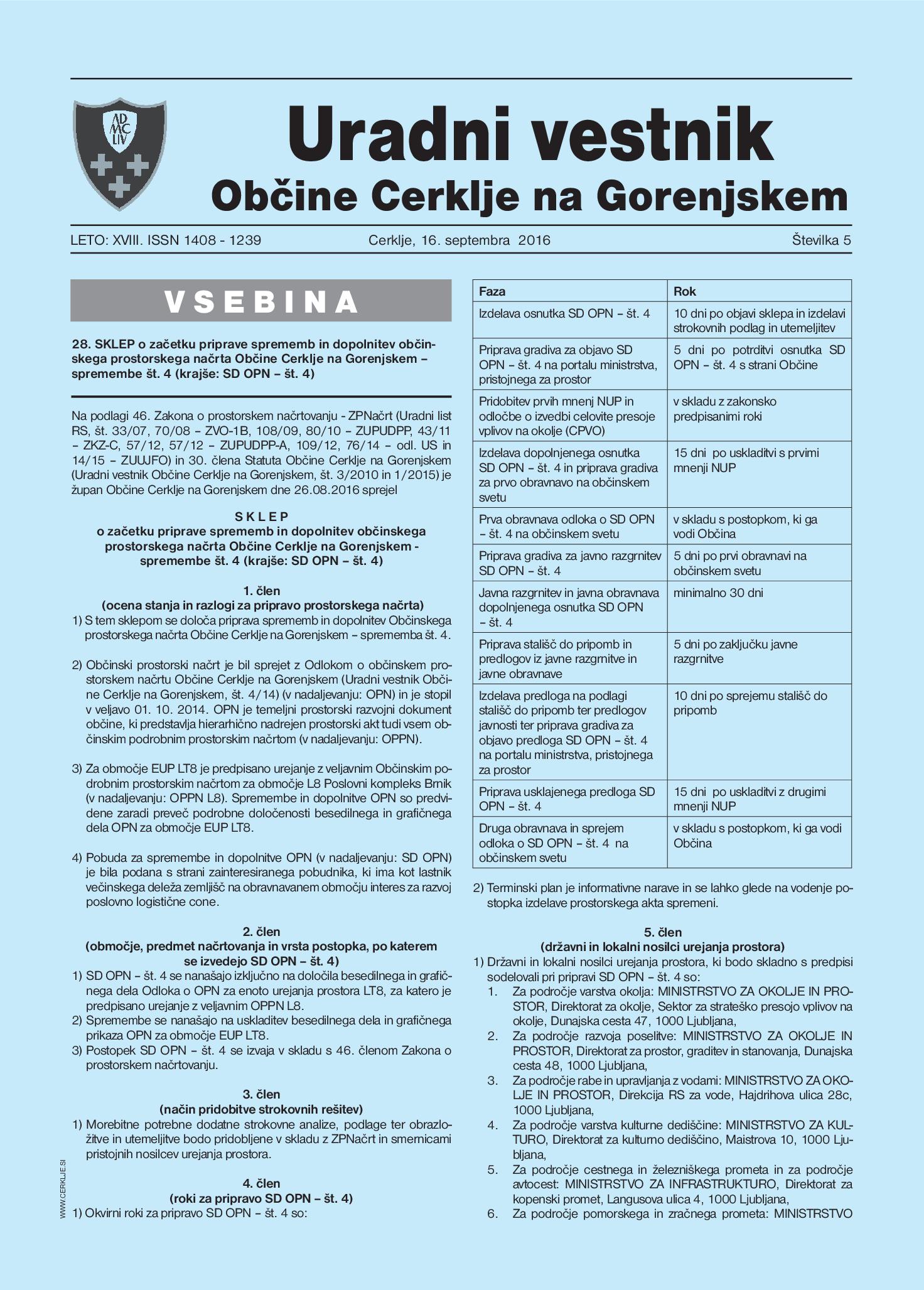Uradni vestnik, Št. 5, 16. september 2016