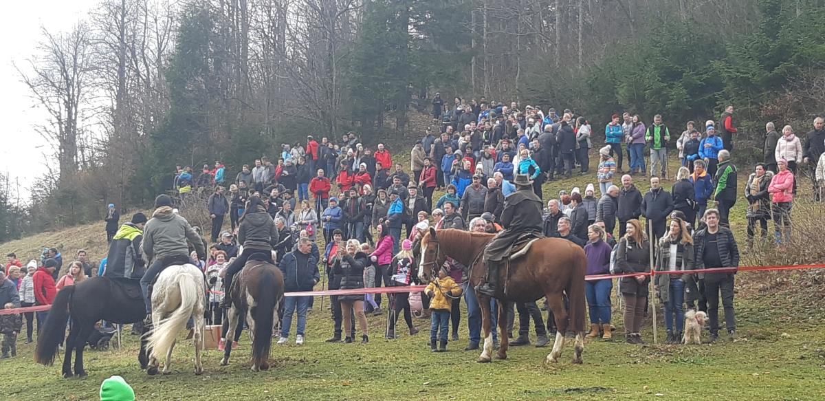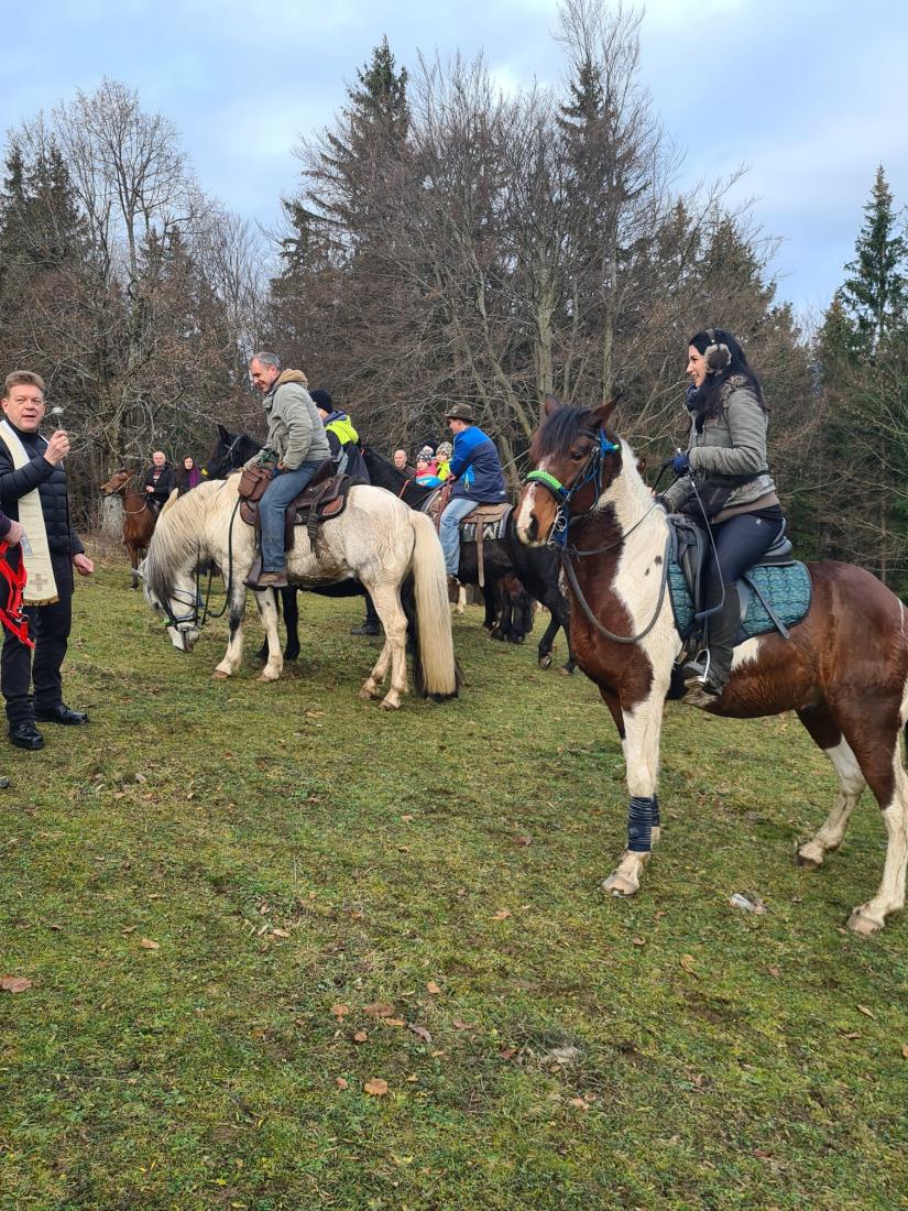 Na Štefanji Gori je blagoslovitev konj in soli pri podružnični cerkvi sv. Štefana (746 mnv) že enaintridesetič pripravilo Konjeniško društvo Krvavec Cerklje s prizadevnim predsednikom Antonom Gubancem. V lepem sončnem vremenu se ga je udeležilo kar 32 konjenikov iz vasi pod Krvavcem. Najštevilnejša je bila štiričlanska družina Kuralt iz Dvorij Eva, Žana in Ajda ter Andrej. Najmlajši udeleženec, ki se je povzpel konjem do cerkve je bil šest letni Lunas Gubanec, najstarejši pa 66 letni Andrej Kuralt iz Dvorij. Konje je za varstvo pred boleznimi in nesrečami blagoslovil cerkljanski župnik mag. Jernej Marenk, ki je jahačem tudi zaželel varno ježo. »Blagoslov pomeni, da se zavedamo, da nobena stvar v našem življenju ni sama po sebi umevna. Živali so zagotovo nekaj čudovitega v našem življenju, so neke vrste spremljevalci našega življenja«. Pred blagoslovom konj je bila sv. maša, ki je bila v lepem sončnem vremenu dobro obiskana. Precej pohodnikov je prišlo na Štefanjo Goro peš iz Adergasa in okoliških vasi. Po blagoslovitvi je Konjeniško društvo Krvavec Cerklje podelilo vsem udeležencem vglavke oziroma astre za konje. Pogostitev so pripravili za vse udeležence »Pr Kuzuc« kuharji Rajko Sršen, Franc Štirn in Rado Ropret. Besedilo: Janez Kuhar, 26.12.2022, foto: Darko Kepic
