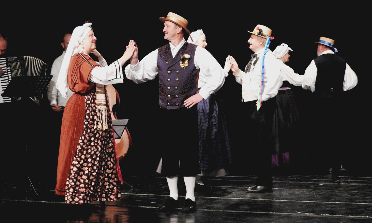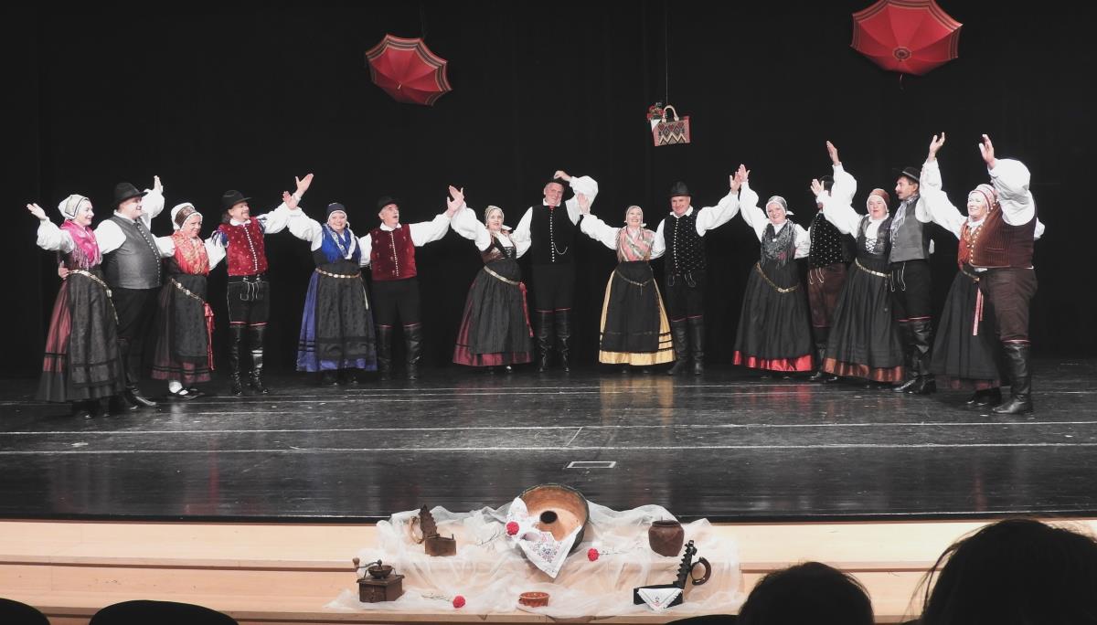 Folklorna skupina Tine Rožanc iz Ljubljane je predstavila splet koroških in primorskih plesov iz Roža in Primorske šagre. Strokovni vodja je Marko Kosmač. Folklorna skupina Kamnik ima bogato 50 letno tradicijo, pred 12 leti pa so stopili na samostojno pot. Navdušili so spletom gorenjskih plesov Na planini luštno je in Ko pridejo pastirji s planine. Otroška folklorna skupina Osnovne šole Davorin Jenko Cerklje, ki jo vodita mentorici Petra Fajdiga in Špela Srečnik, navdušila pa je s Škrati s Krvavca. Ljudska pevca in godca Jože in Jožica, ki igra tudi na bršlanov list, doma iz Trboj, sta zaigrala venček narodnih Kaj si imela in Sem mislil sinoč v vas priti. Nastopili so tudi Ostovičevi godci člani Akademske folklorne skupine Ozara Kranj, kjer so zaigrali Valček spod Krvavca, Matičkovo polko, Valček z Bohina in Ceprle. Besedilo in foto Janez Kuhar, 2.4.2023