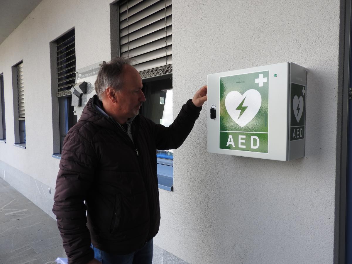 Nov defibrilator pred vhodom v Zdravstveni dom Cerklje