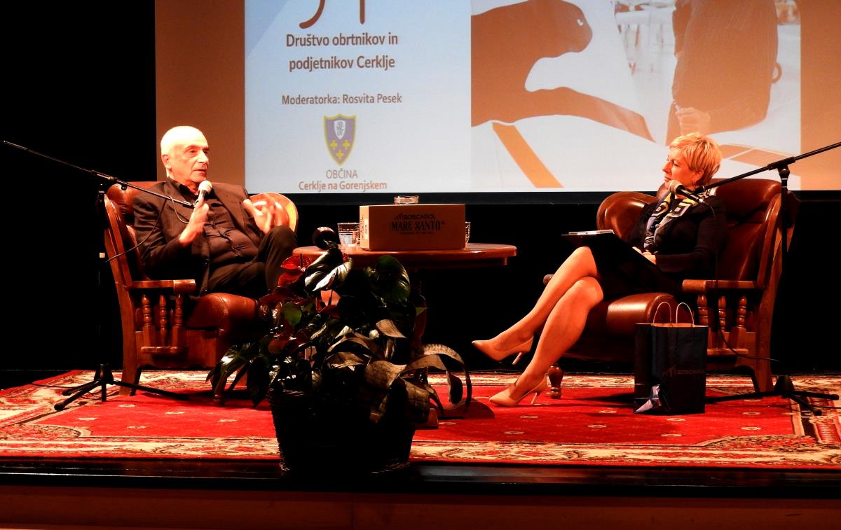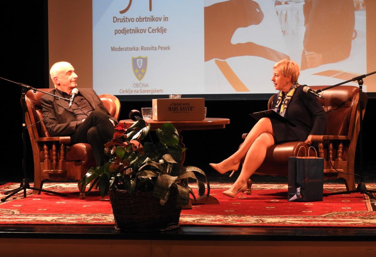 Društvo obrtnikov in podjetnikov Cerklje na Gorenjskem je pripravilo v sredo, 19. aprila 2023 v dvorani Kulturnega hrama Ignacija Borštnika v Cerkljah zelo zanimiv pogovorni večer z podjetnikom Pipistrela Ivom Boscarolom, ki ga je vodila Rosvita Pesek. Po razgovoru je Boscarol odgovarjal tudi na vprašanja obiskovalcev.