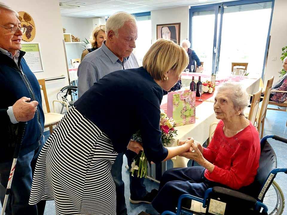 Slavljenki je na krajši slovesnosti v imenu zaposlenih in stanovalcev Doma Taber čestitala direktorica Martina Martinčič in ji zaželela obilo zdravja ter dobre volje, čestitke slavljenki pa je izrekel tudi cerkljanski župan Franc Čebulj in ji zaželel predvsem zdravja. V imenu stanovalcev Doma Taber pa je slavljenki voščila s »Pesmijo o prijateljstvu« Marta Eržen, stanovalci doma, zbrani v dnevnem prostoru, pa so zapeli pesem Oj mladost ti moja. »Vse najboljše, draga Slavica in veliko zdravja!« pa so jubilantki ob prazniku zaželeli sorodniki-nečaki Iztok, Stanislava in Anton.
