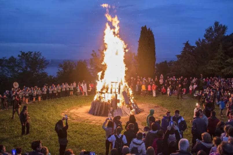 – če požarna straža ni zagotovljena, mora biti kurišče kresa obdano z negorljivimi materiali (npr. peskom, kamni ali opeko),