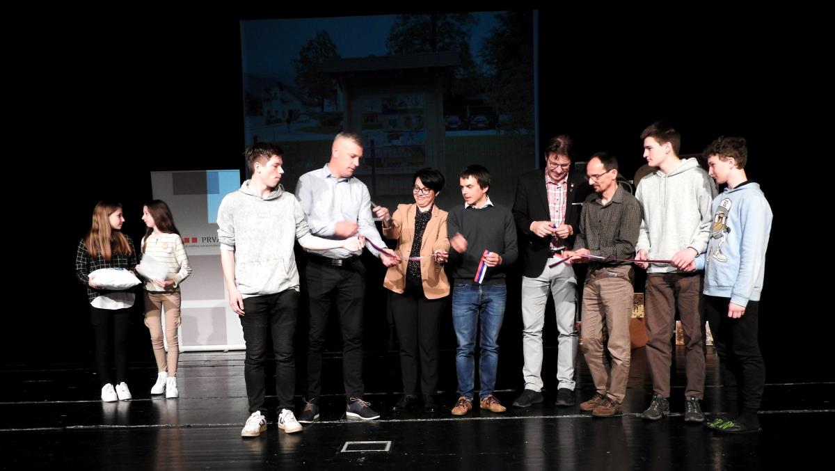 DSCN 5196 Svečano rezanje traku so zaradi dežja opravili kar na odru Borštnikovega hrama