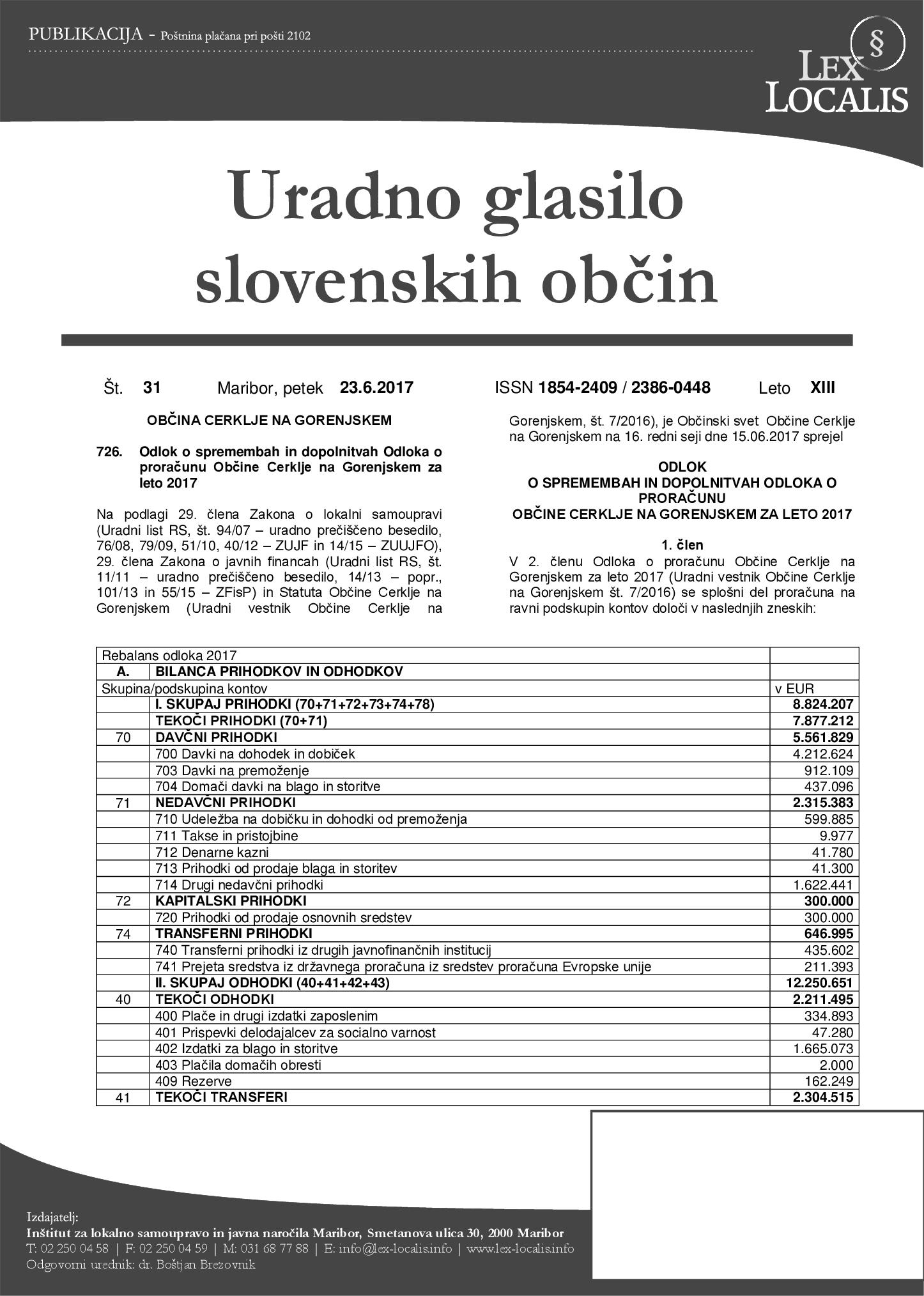 Uradno glasilo slovenskih občin, Št. 31, 23. junij 2017