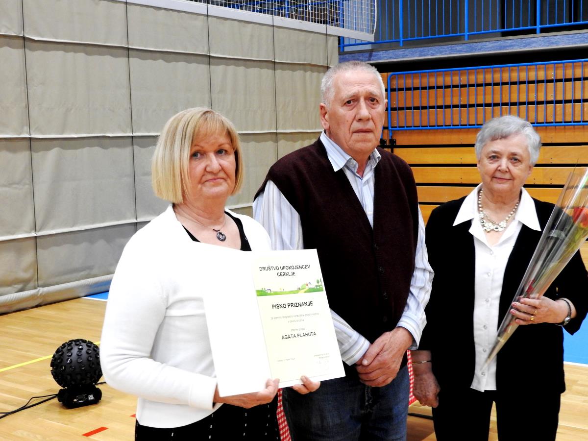 Trem zaslužnim članom društva je predsednica Marta Hočevar podelili priznanja, ki so jih prejeli Franc Dolinar, ki je prejel priznanje ZDUS-a, Agata Plahuta - društveno priznanje za dolgoletno pomoč pri delovanju društva in Vinko Janežič, zahvala za dolgoletno vodenje balinarske in namiznoteniške sekcije.