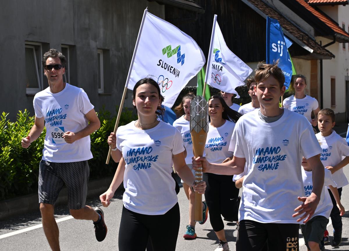 Več kot 100 mladih športnikov z našimi olimpijci, med katerimi so bili Tadeja Brankovič, Rožle Prezelj, Aljaž Janhar, Tia Malovrh in Tea Pavec je z baklo v roki odteklo častni krog okrog osnovne šole Davorina Jenka v Cerkljah.